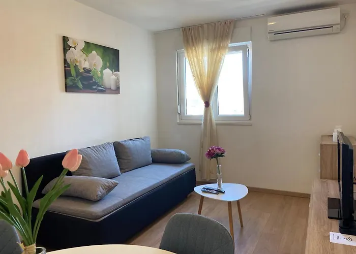 The apartment offers a fully equipped kitchen with a microwave, a fridge, and glassware as part of self-catering options. This accommodation is a 14-minute walk from the restaurant Gyros - Travnicki cevap. This apartment is a short distance from the nearest bus stop Vrh Kmana 1.